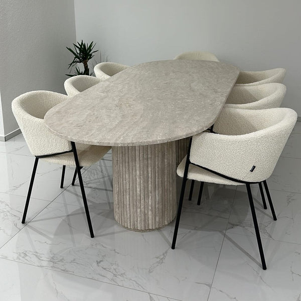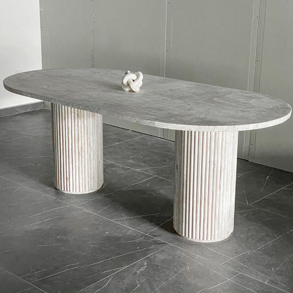 Assemblage: Les pieds et plateau sont livrés détachés. Le plateau se pose directement sur les pieds. Le poids du travertin rend cette table stable et ne nécessite pas d’assemblage.